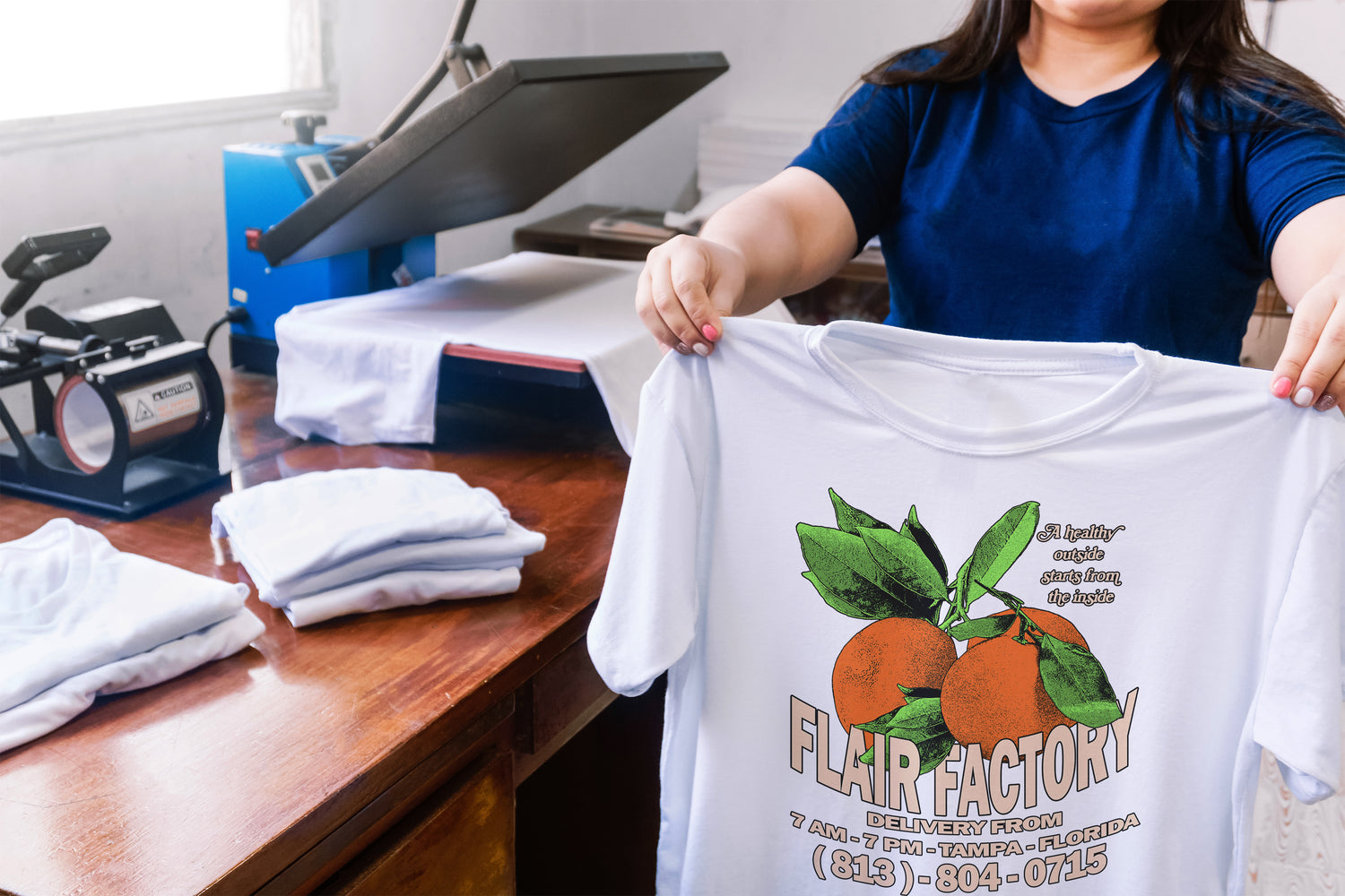 At Flair Factory, we offer a wide range of custom apparel printing services to fit your needs. Our services include screen printing, embroidery, direct-to-garment (DTG) printing, heat transfers, custom uniforms, custom athletic wear, dye sublimation, and more. We take pride in offering top-notch quality and customer service for all of our custom apparel printing services.